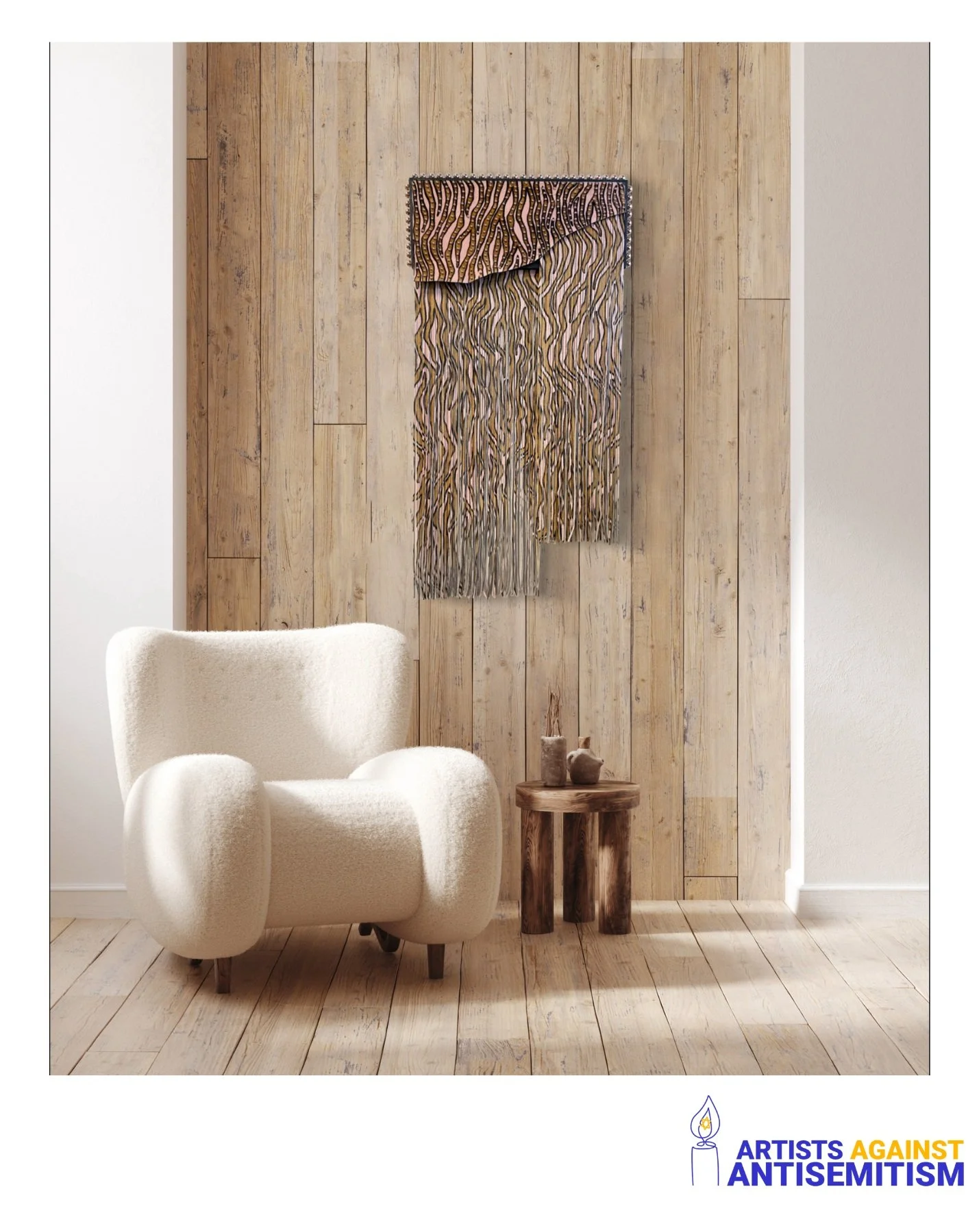 A note from the artist: "Stripes" is a metaphor for the prisoners’ striped uniforms worn in the concentration camps. The collection aims to capitalize on the popularity of animal-skin patterns that can be adapted into home decor by producing unique leather wall art with a timeless appeal. Bold animal prints anchor standout pieces, which are complemented with circular metallic studs. Made from premium Italian leathers that are sourced ethically and Italian-made hardware. The studs' hardware has a mirror reflection, high sheen, and perfect polish, all reminiscent of Jeff Koons. Long leather fringes are a distinguishing feature.